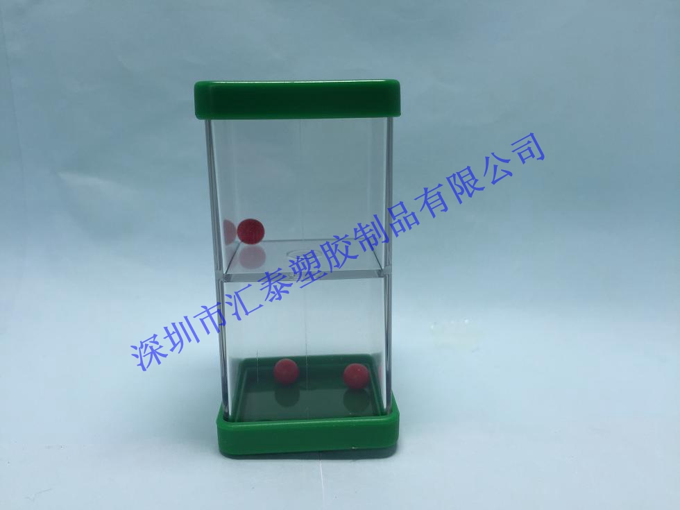 使用方法:盒內三個球可以通過中間擋板的孔進入另外一端,優先全部進入者勝。